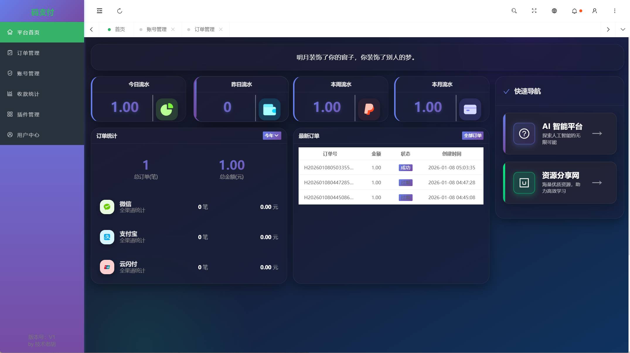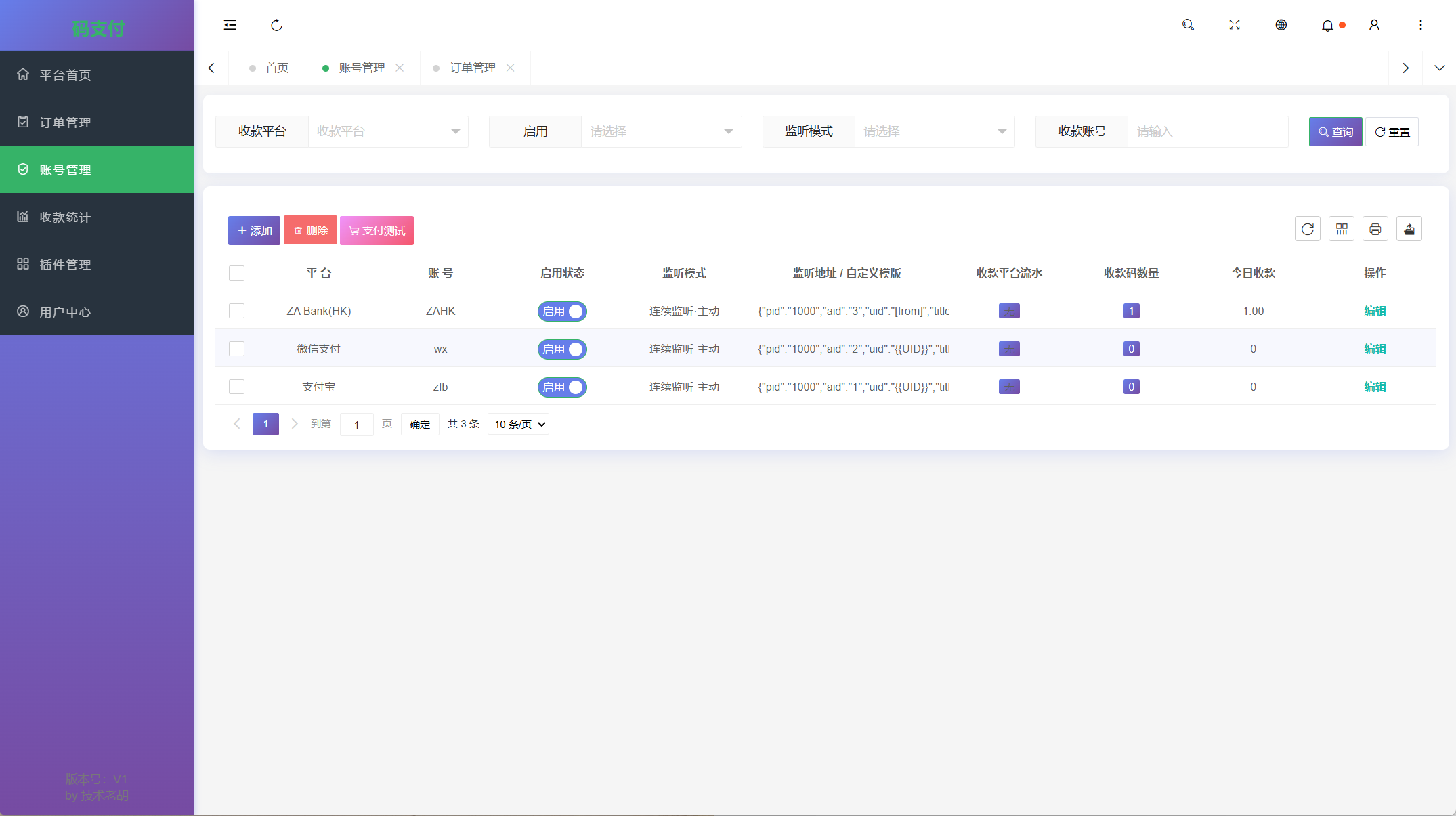 支持多平台、多账号、多通道,灵活配置,收款轮询